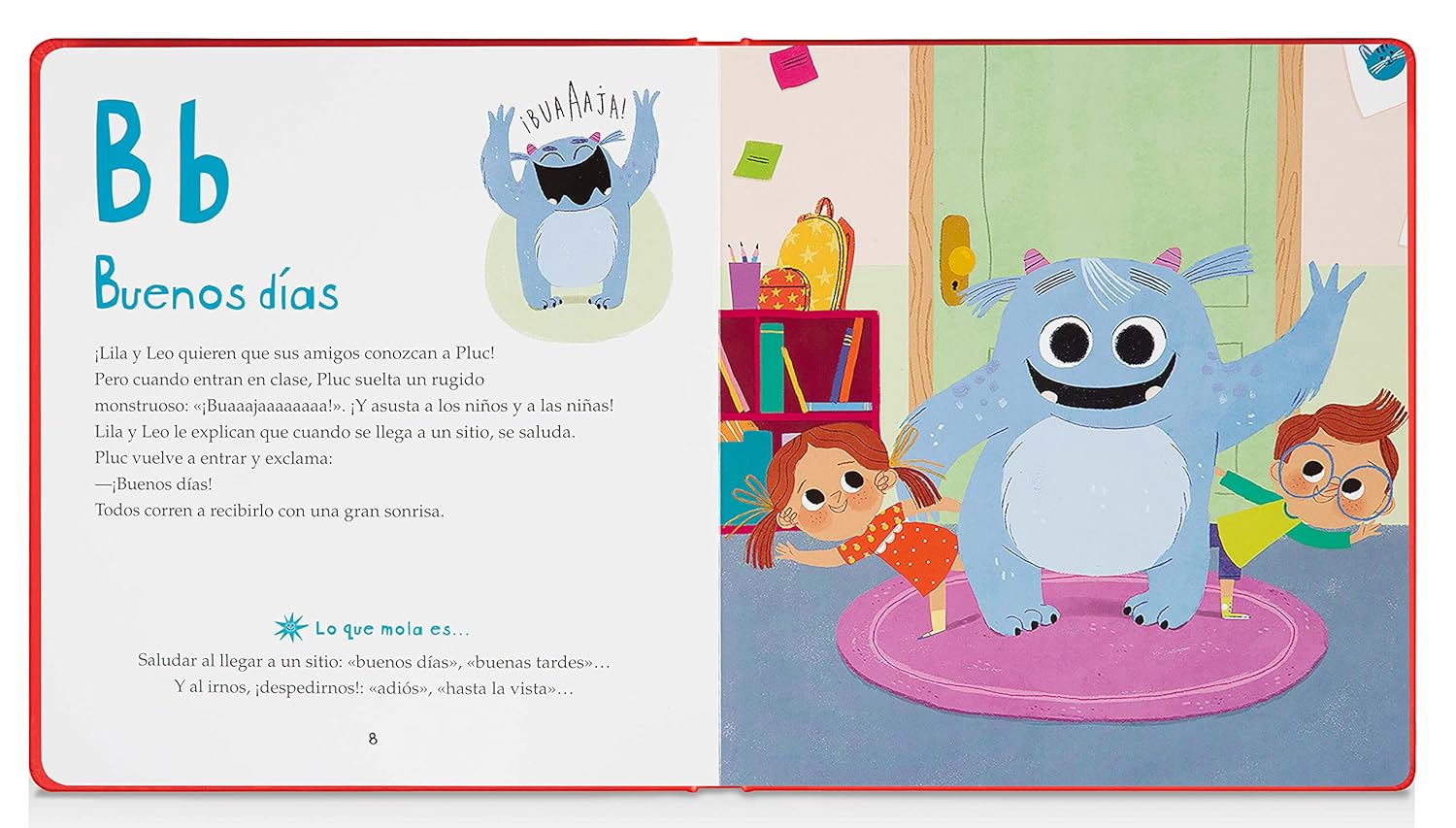 Pluc, el monstruo más entrañable del universo, está pasando unos días con Leo y Lila, sus amigos humanos. El problema es que a veces mete la pata: come con las manos, se tira pedetes en el salón (¡pffff!)... Leo y Lila le van a enseñar, letra a letra, a ayudar, a compartir o ¡a dar las gracias!